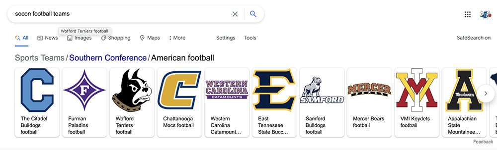 I was looking for a SoCon school to pull for an what do you know we're still listed as a SoCon football team according to the Google machine