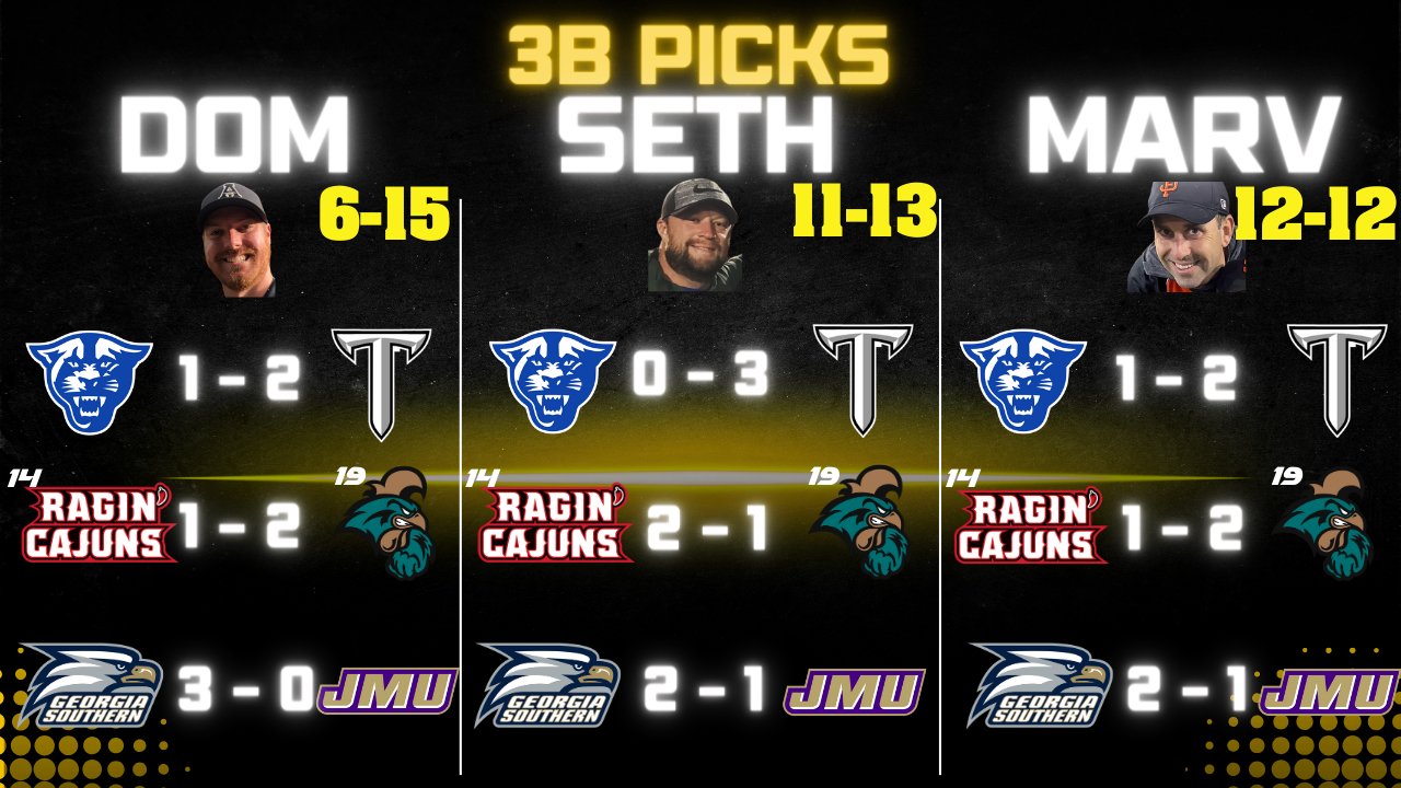 Cajuns are on a different planet right now! Shocked with the Ga State vs USM series (although they did salvage a win today). App's performance was about what I expected BUT was certainly hoping to steal this last one at home after being up early.