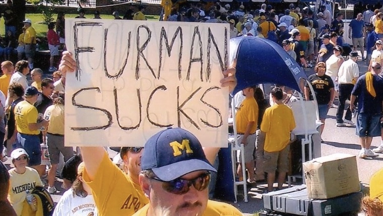 What an incredible day. I was a senior at App. My roommate somehow got us tickets on the FRONT ROW behind the App bench. We were right in line with the block. To this day, I have no idea how he secured those tickets. There were 4 of us my roommate and his dad, my dad and myself. Leading up to the game we had some Michigan fans who were pretending to be nice but were dripping with arrogance. They told us “Lloyd Carr is a good man, he won’t run the score up.” They were sooo excited to see highly touted freshman QB Ryan Mallett. They estimated he would get in by the 2nd quarter. Needless to say we never saw Mr Mallett take the field that day...