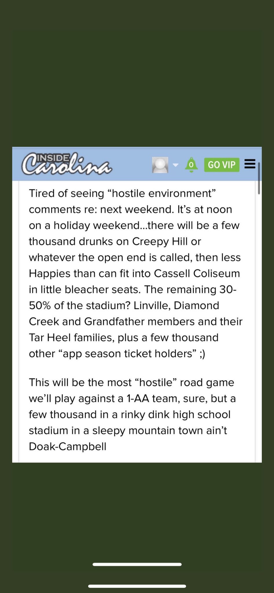 I met that unc poster at that game in kenan stadium. He was on his phone. This post splains alot. He thought unc won that game. At the time i remember thinking that the only folks paying attention were app fans. This proves it.