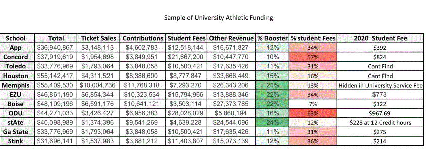 I read recently that JMU athletics is 78% subsidized by student fees. They are spending a ton of money, but where is it coming from? I believe App is somewhere in the 50%-55% range and that is still too much.