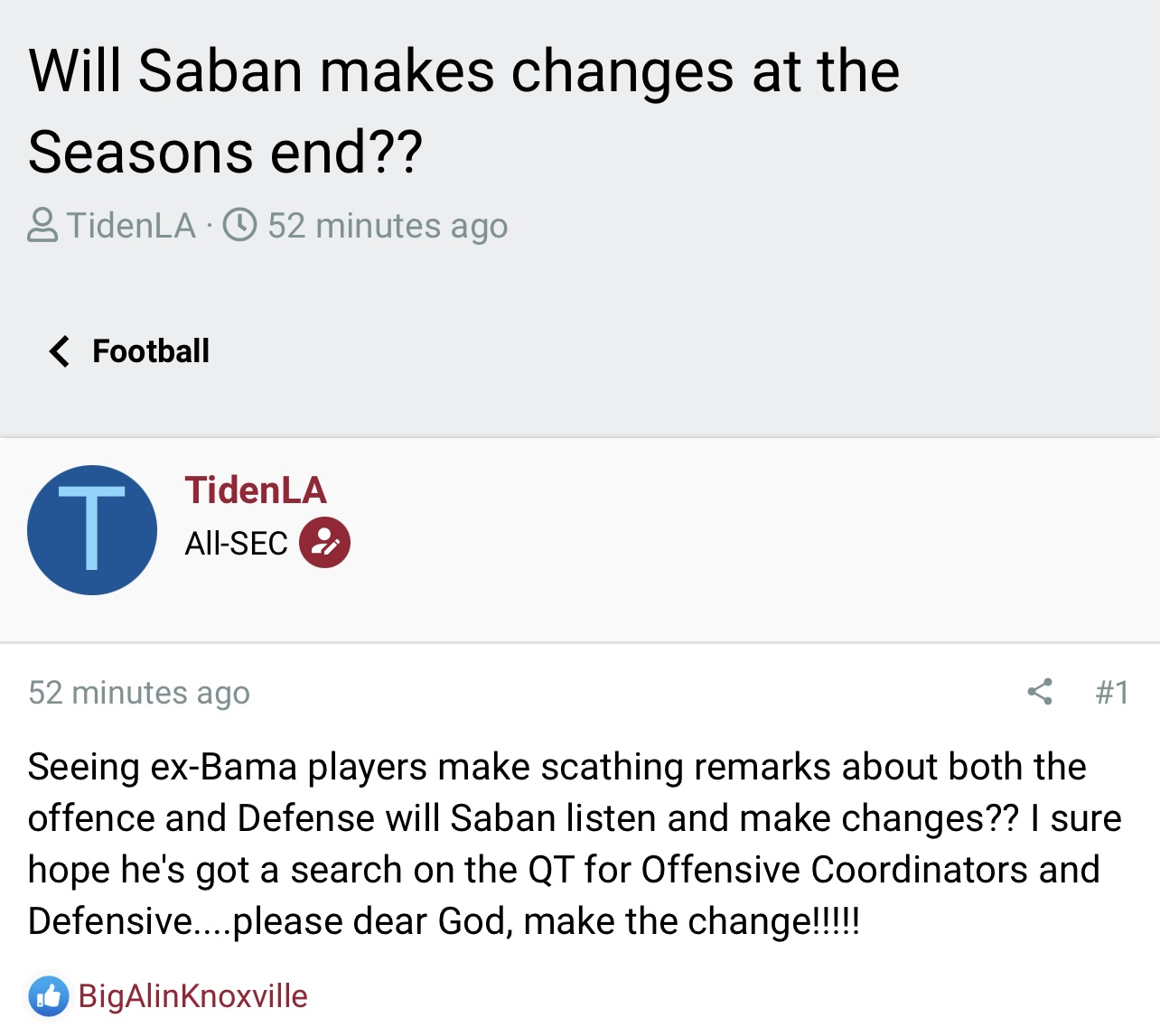 You said not to compare and then you say let Bama lose to Texas State… oops you’re comparing teams! The point the author of this post is making is what happens when a program has success is used to winning and they slip. Some on this board are just like Carolina fans now. You figure you’re entitled to wins because of the name on the jersey. Does not work this way. The good news is this is all talk and has Zero impact on our coaches’s jobs. What is good about this is when you hear the coaches and players will come together and play for themselves is for this reason. Even when you own fans turn against you. You play for yourselves. We appreciate the motivation you’re giving to the team. Hopefully it pays dividends for the remaining games and into the next season. Keep up the “good” work!