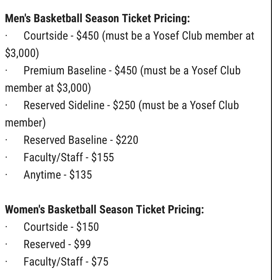 Faculty rates 🟰 $585. (Football it’s $260 vs. $280, baseball $95, women's b-ball $75, men’s $155).