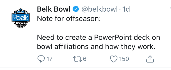 The more the Belk Bowl trolls Ethan, the more I think that there’s a .01% chance of this happening. It won’t, but I’m allowing myself to believe for the moment.