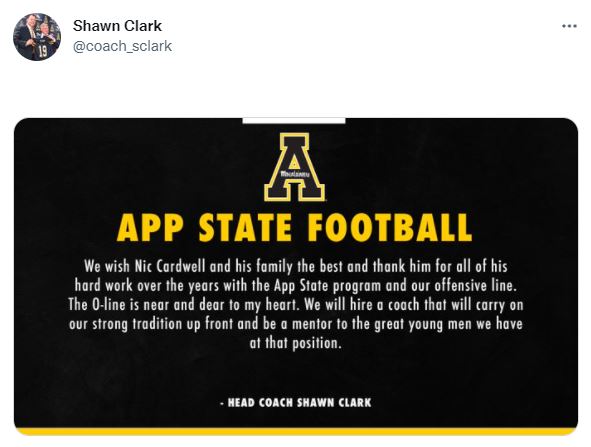 There's nothing else afoot. He has a chance to go back as a position coach with his mentor for more money.appstate77 wrote: ↑Wed Feb 16, 2022 11:03 amMy senses tell me the same. This is basically a lateral position move except for it being to a P5. Something else afoot.