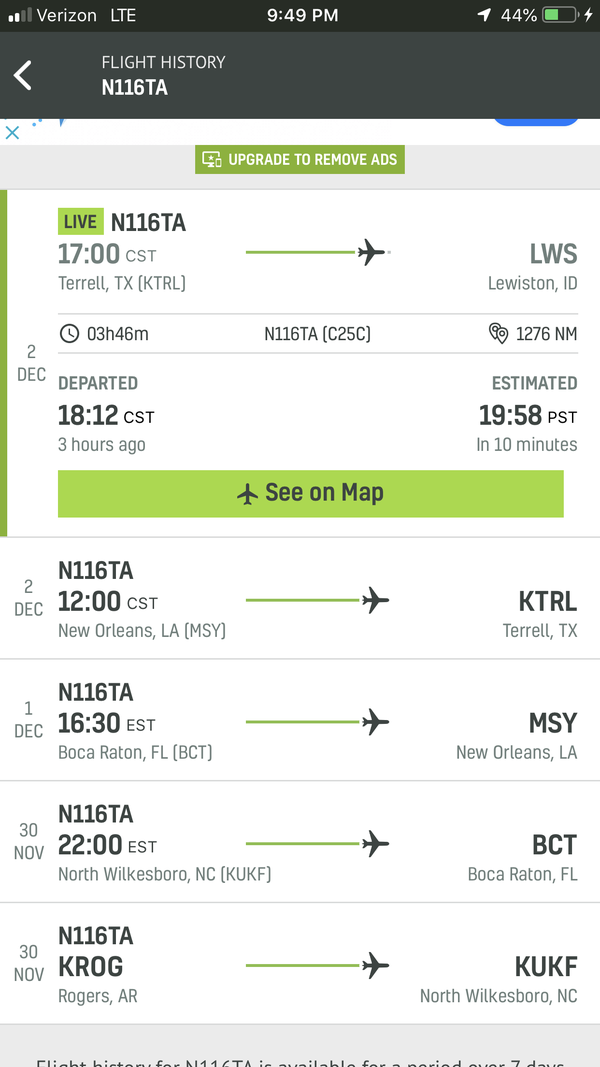 Saw this on Arkansas thread, and also heard from a reliable source that Drink had a face to face interview with Ark. AD. Just posting the info and screen shot. This is a plane track from Ark. to North Wilkesboro (Drink) to Boca (Kiffin) and Idaho (Leech). Just thought I would share.